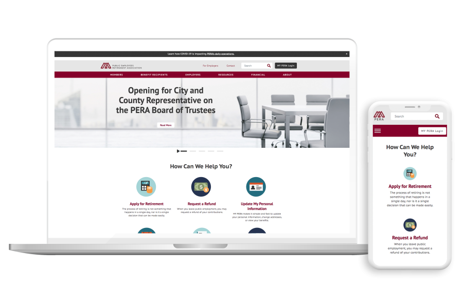 Our Work Search by Keyword Combine Search by Service Field Categories Target Id - Any -User Experience (UX) ResearchWeb Design + DevelopmentMarketing + VideoDrupalWordPress Search by Industry Field Our Work Industries Target Id - Any -GovernmentHealthcareHigher EducationNon-Profit Apply Regenerative Medicine Minnesota CaringBridge US Math Recovery Council Minnesota State Retirement System Minnesota State Board of Investment Hennepin-Carver County Minnesota Public Employees Retirement Association (PERA)